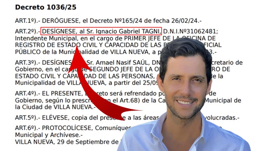 Tras la publicación de la nota sobre el decreto 1036/25, desde el municipio salieron a aclarar que “todos los intendentes son jefes inmediatos del Registro Civil”, conforme a la Ley Provincial 4.992, y que “no perciben remuneración por ello”. Nosotros sabíamos de la existencia de esa norma, por eso desde Soy Villa Nueva señalamos que se trataba de una cuestión política y no jurídica. Si la ley ya lo establece, la pregunta es inevitable: ¿para qué Tagni emitió un decreto designándose a sí mismo en un cargo que ya le corresponde por ley?